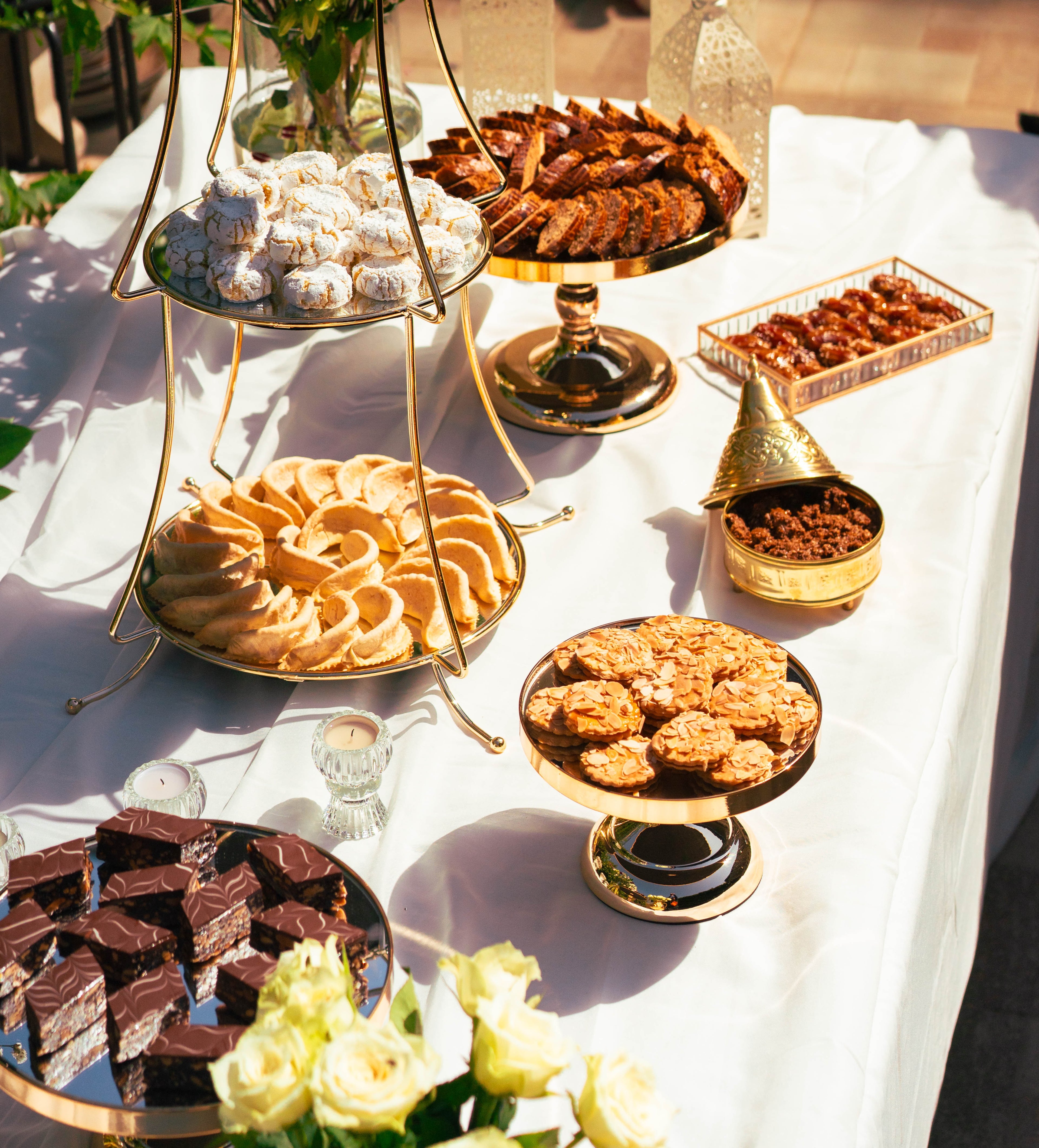 Nous revisitons les grands classiques de la pâtisserie marocaine et orientale pour proposer des buffets sucrés et salés raffinés, des coffrets invités personnalisés et des pâtisseries artisanales.