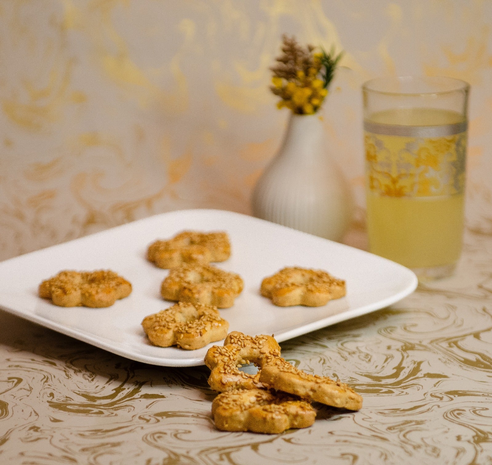 Nos Kaak allient la douceur de la fleur d’oranger, le croquant du sésame et l’arôme subtil de l’anis. Une texture légère, dorée, parfaite pour accompagner une boisson chaude ou froide.